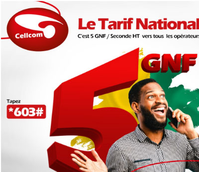 - Les appels vers Cellcom sont à 6 GNF par seconde.