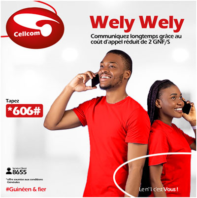 Flexi découle du mot Flexibilité, qui signifie souplesse. C’est le mot générique qui regroupe tous les plans tarifaires de Cellcom Guinée. En outre, le Wely-Wely est très spécifique et très avantageux à cause de son tarif d’appel extraordinaire. Cependant, il offre la possibilité aux clients de communiquer longtemps grâce aux coûts d’appels réduit de 2 F la seconde, soit 120 F la minute. Il marche 24H/24, 7J/7.